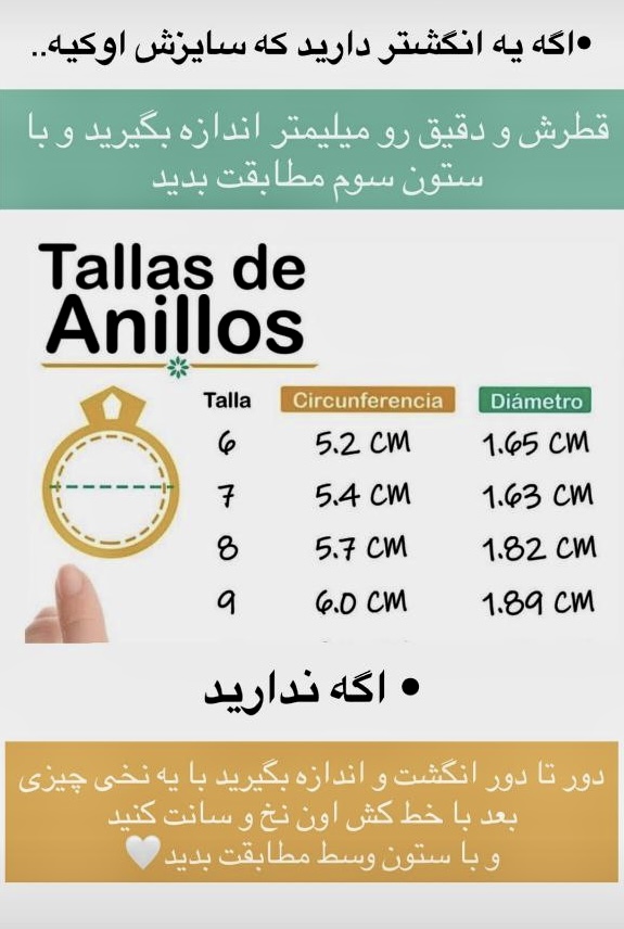 راهنمایی سایز بندی انگشتر گذاشته شده حتما چک کنید🙏🏻